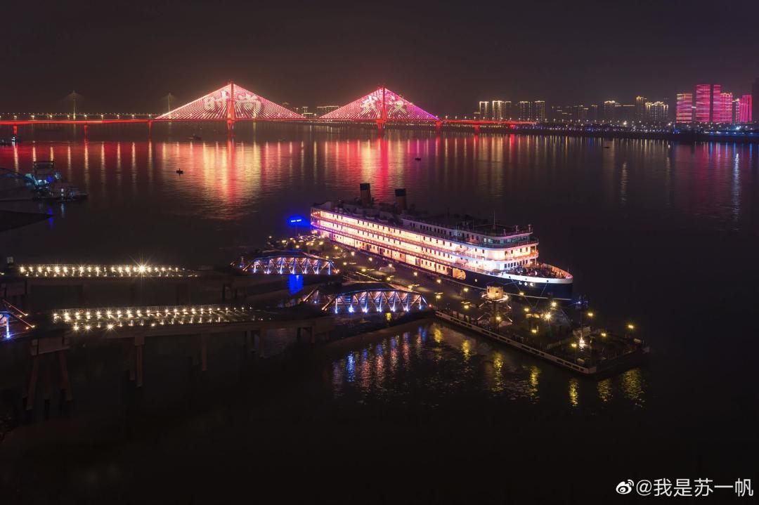 ○ 长江灯光秀365天无休,纵向以长江为主轴,横向以桥梁、干线多层次亮化,沿途点亮1000余栋楼宇、7座桥梁、2座山体(龟山/蛇山)及趸船码头(图 / 我是苏一帆)今年春节,从除夕到初六,每晚 6 点,两江四岸流光溢彩。