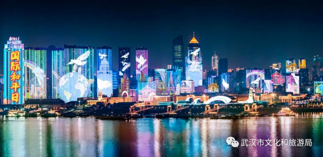 ○ 国际和平日,群群白鸽在两江四岸翱翔翻飞;中国记者节时,全城都变成玫红色。还有国际志愿者日、国际护士节特辑等。(图/江汉朝宗)