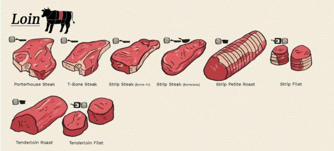 1、Loin, short loin, strip loin cuts腰肉、前腰脊肉切块
