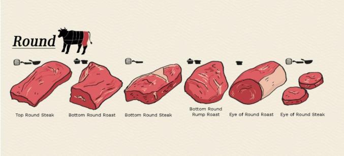 图源:www.finedininglovers.com6、Round cuts牛后腿/臀肉切块