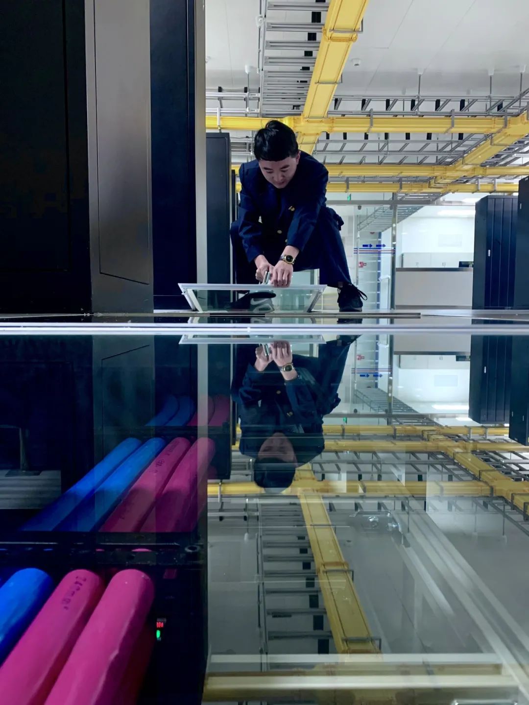 在将近1000平方米的通信机房里,如“兵马俑”方阵般摆放着5排60多组黑色金属柜,这些足有2米高的柜子里闪烁着绿、黄、红灯的各类通信设备。与这些设备相连的,是40多台整齐摆放的电脑,电脑旁的8部电话此起彼伏铃音不断,林娟和王传腾需要目不转睛地盯着这些屏幕,手指不停拨动着鼠标,对调度、监控、预警、防灾等各类系统的传输通道进行实时监控。