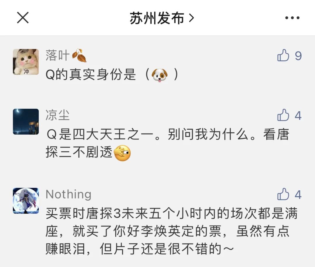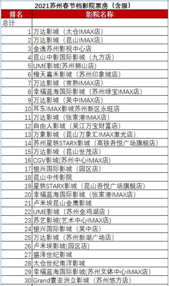 大年初一,在疫情防控原则上每场上座率不超过75%的情况下,票房超过4000万,刷新苏州历史单日票房纪录,上座率高达62%,黄金档几乎一票难求。大年初二,苏州票房排名甚至一度跃升至全国第四。