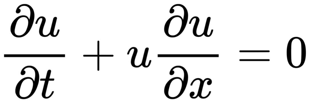 。这个方程被广泛应用于流体力学,非线性声波传播,空气动力学,交通流等等。它所谓的非线性是方程第二项uux造成的:因为变量与导数相乘使得他没办法因式分解,导致我们难以求解。怎么办?目前来说最常用的方法就是直接对这类方程进行离散求数值解。