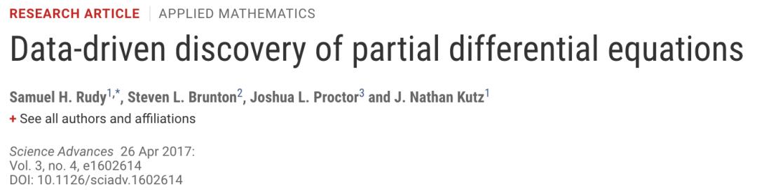 我们要介绍的第一个通过机器学习方法求解偏微分方程的文章,是一个来自华盛顿大学的团队在2017年发表在了Science最著名的子刊Science Advances上面。