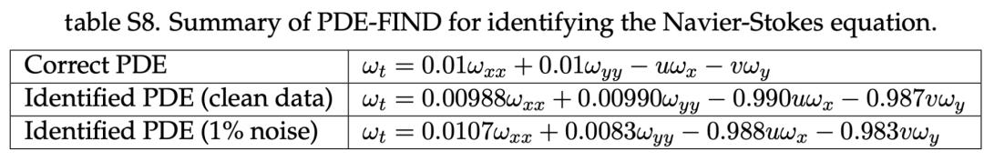 论文中,作者们使用了一个叫做稀疏回归的方法,通过把原本方程离散求解得到的变量当成训练数据去训练;通过迭代优化就可以找到这些数据对应的偏微分方程。作者们给他们这种算法起了一个很有趣的名字:偏微分方程的函数化非线性动力学识别,英文简称PDE-FIND,正好就是寻找偏微分方程的意思。