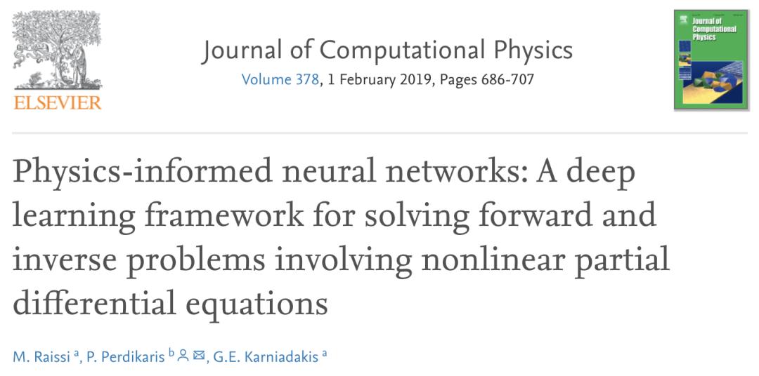 2019年,来自布朗大学应用数学的研究团队提出了一种用物理方程作为运算限制的“物理激发的神经网络” (PINN) 并发表在了计算物理学领域权威杂志《计算物理学期刊》(Journal of Computational Physics) 上。