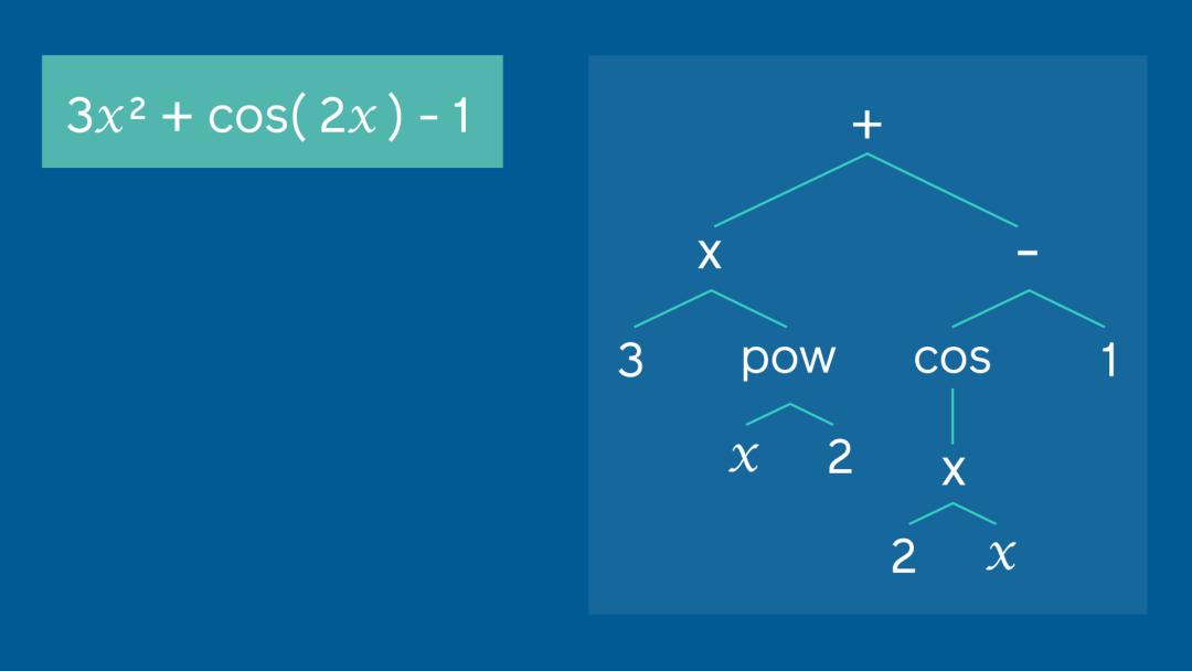 在这篇文章中,作者们把我们数学中的各种运算符号看作是一种逻辑语言。作者们认为数学中的 所有运算都可以用所谓的树状结构来进行拆解。比如下面这张图,如果我们要算