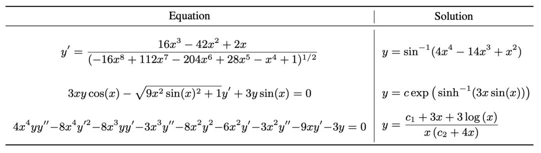 △ 用作者们的算法解出来的方程;这些方程在商业软件里面都解不出来这种全新的基于NLP的解方程方法竟然在速度上完虐商业数学软件Mathematica、Maple、和Matlab,真是让人不禁感叹,现在连商业计算软件都可以被AI替代了!