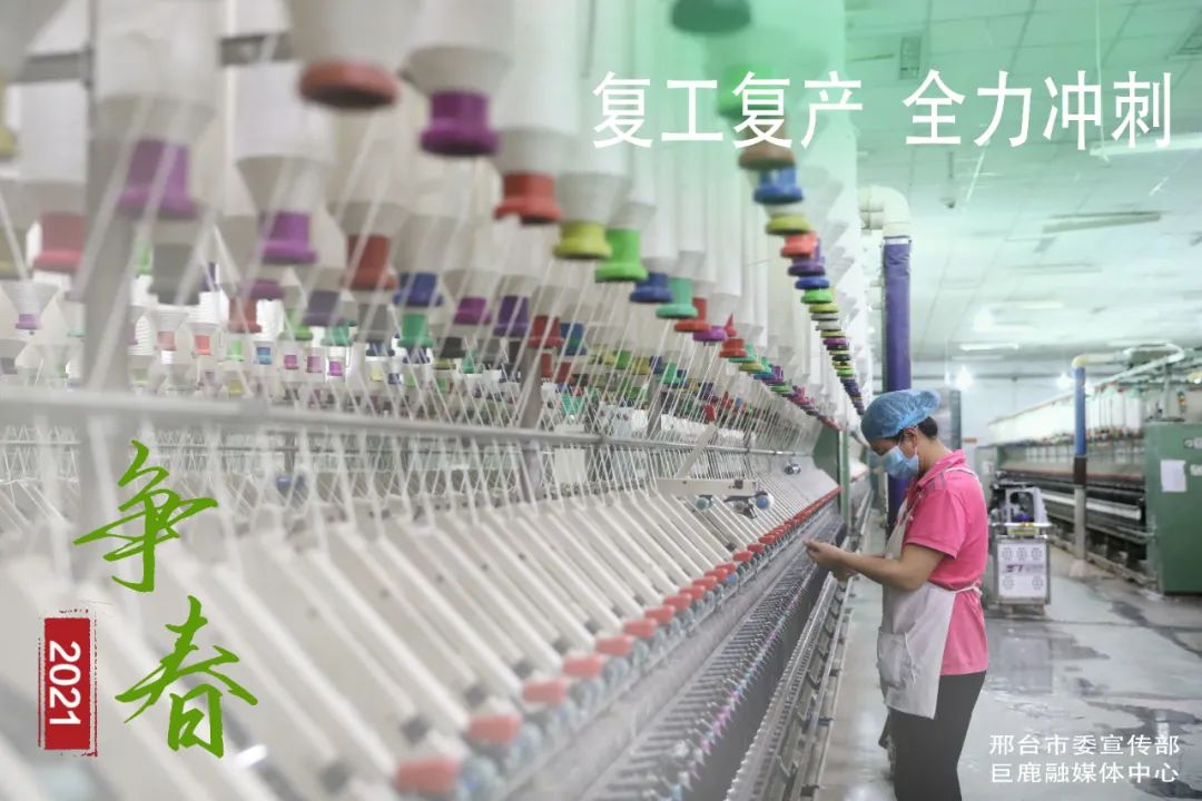 2021年2月17日,工人在河北省巨鹿县一家纺织企业车间忙碌加工市场订单。