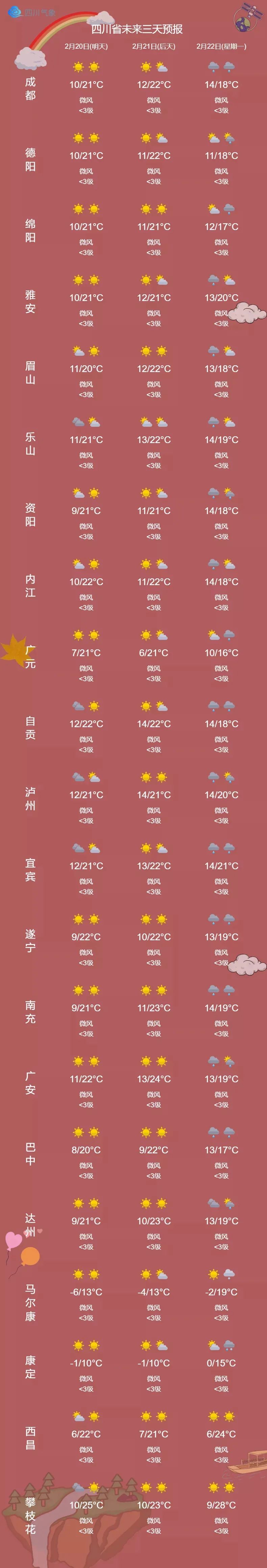 20-22日四川城市天气预报↓↓↓