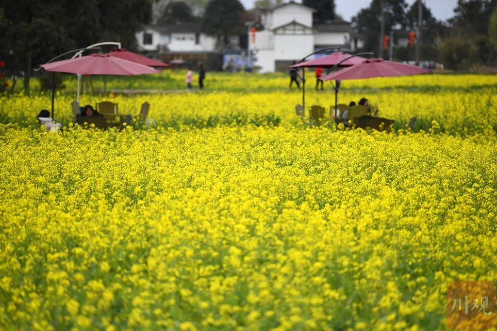 游客在崇州市白头镇五星村赏花。