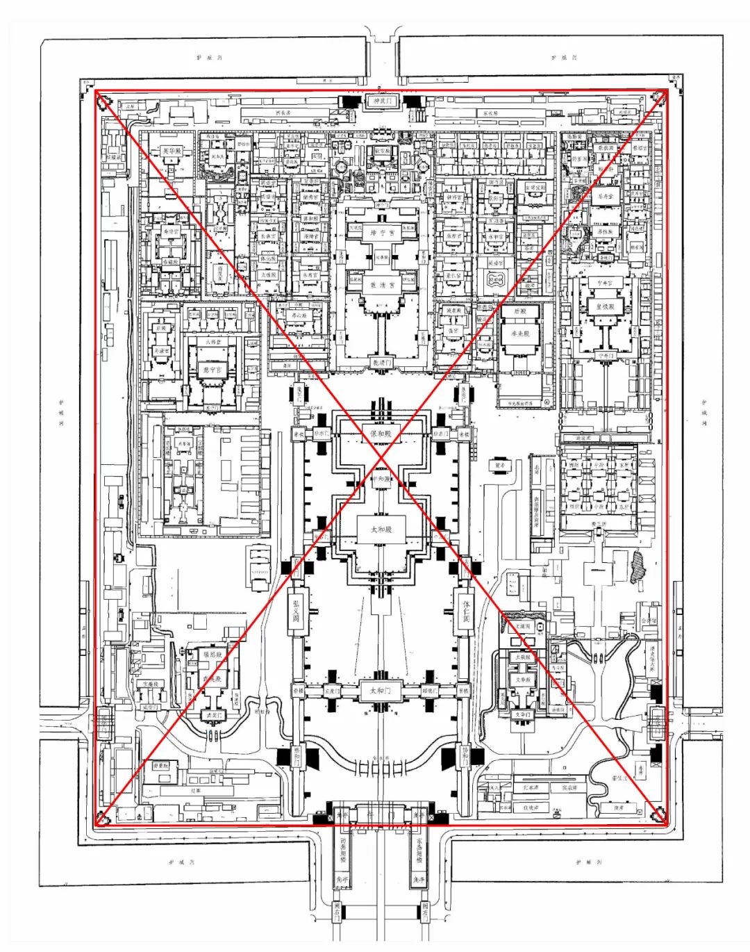 图10 紫禁城平面几何中心位于