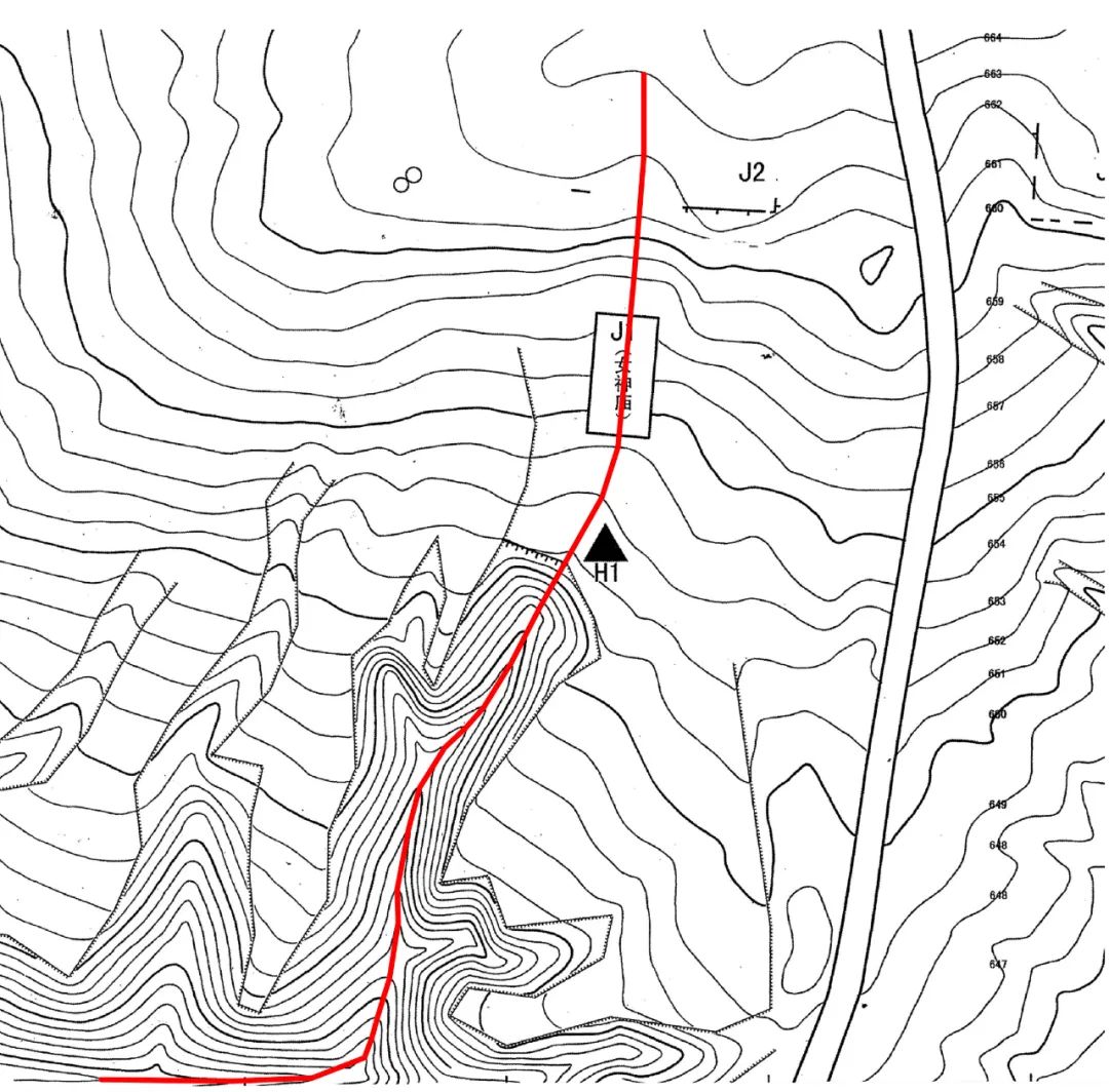 图15 辽宁牛河梁“女神庙”轴线与山脉走势分析图