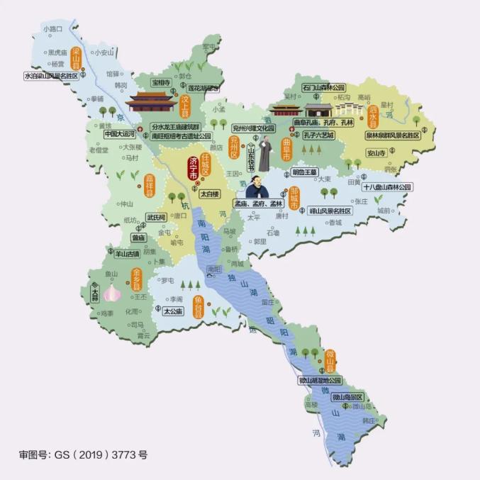 水南四湖:微山湖、南阳湖、昭阳湖、独山湖,贯穿南北。