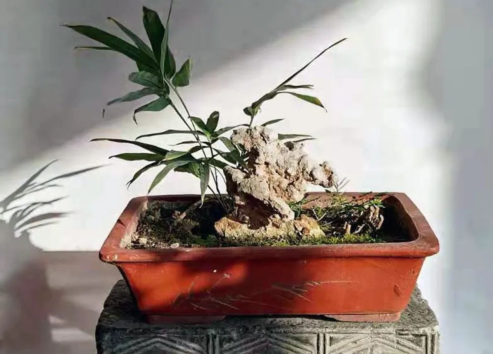 青竹瘦石盆景据许多志书介绍,观赏石因质地不同而有许多品种。