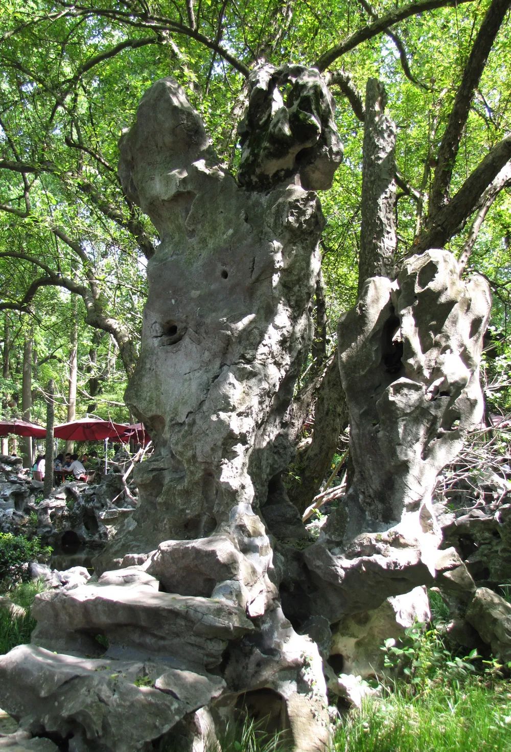 据科普知识介绍,太湖石是由石灰岩经过天长日久的水侵土蚀后慢慢形成的,有水石和干石两种。水石产于河湖中,干石是由酸性红壤的侵蚀变成,表面及内部出现了许多漏洞、皱纹等等,形状各异,千姿百态,玲珑剔透。太湖石之美,美在皱、漏、瘦、透,因此,吸引了人们的好奇和喜欢。
