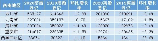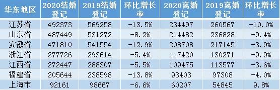 根据最新出炉的2020年度各省、市、自治区婚姻登记数据: