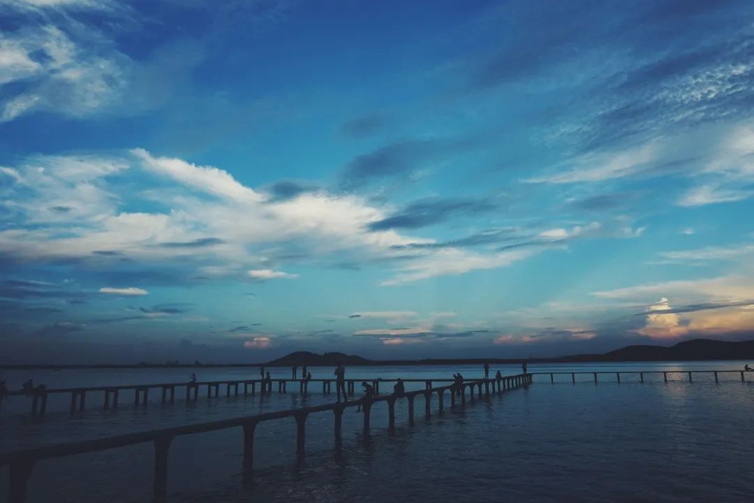 在学校时,心情不好偶尔会绕到东湖去看一看,湖面宽阔、平静,我每次都会盯着水天一色的交界处发很久的呆。而回家后,散步时也经常遇到湖,望着对面的万家灯火,我总会想起东湖的夜晚,然后开始默默地想“珈”。在珈等日出 VS 在家等日出