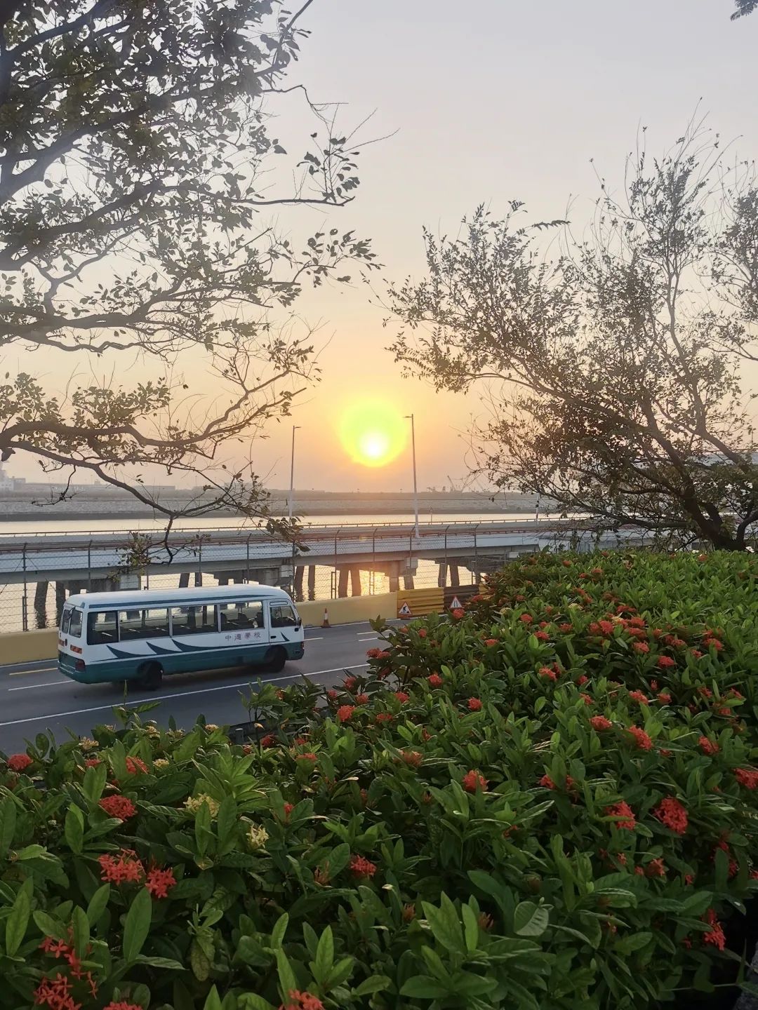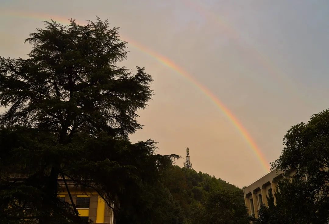 东湖水长,日出的朝霞灿烂云霓,水天相接,不断拉伸着远方的地平线。而回家后再看日出,太阳带着南方的温暖气息,从海面上升起橙红的一团,给城市注入着清新的活力。在珈看彩虹 VS 在家看彩虹