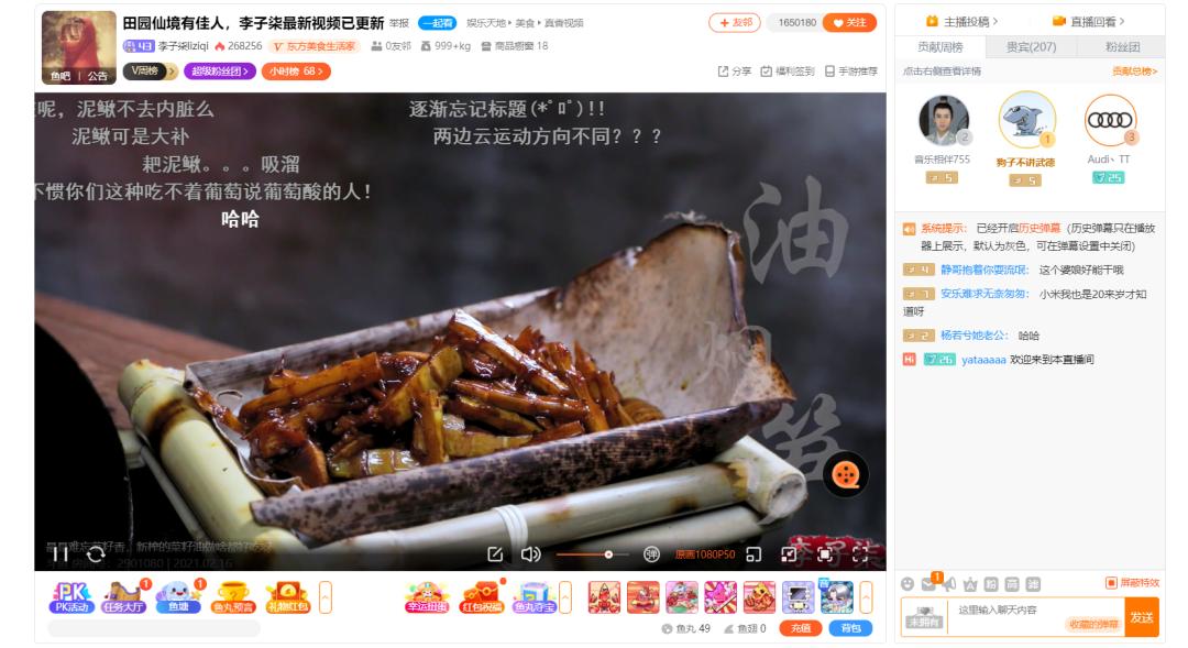徐大sao李子柒为代表的头部创作者以两种形式存在于斗鱼: