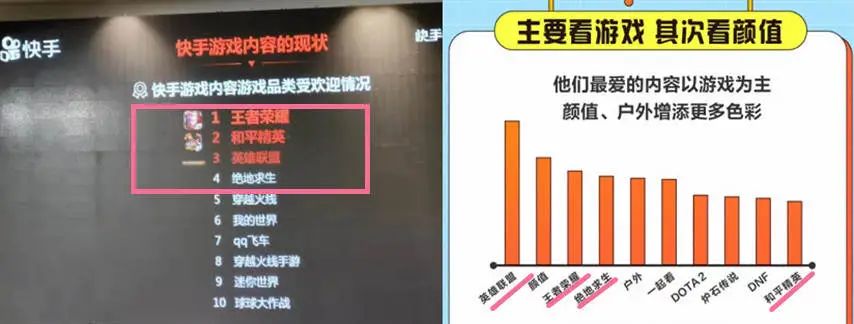 王者荣耀、英雄联盟、绝地求生这几个斗鱼虎牙最火的游戏,也是快手上最受欢迎的游戏内容。