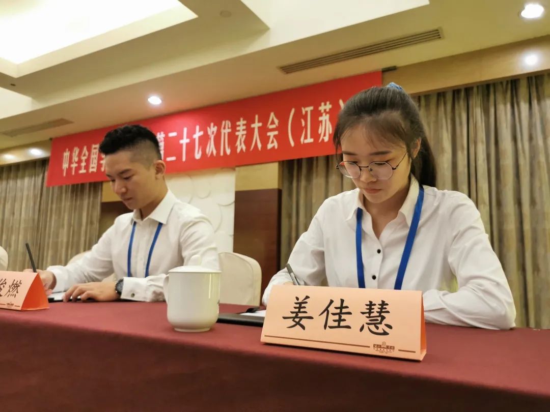 姜佳慧总结她大学三余年生活时,总调侃自己“除了学习,就是工作”。的确,在她近四年的大学时光中,堆砌了15种职务与身份,连任四年的法学1701班长兼团支部副书记、法学1902班副班主任、江南大学学生会主席、江南大学校团委学生兼职副书记、江苏省“青马工程-先锋骨干计划”学员、全国学联二十七大代表 (全校学生仅1人);全国青年马克思主义者培养工程学员(全校仅1人)……每一个身份的支撑、每一项职责的履行,姜佳慧都作出了百分百的努力。