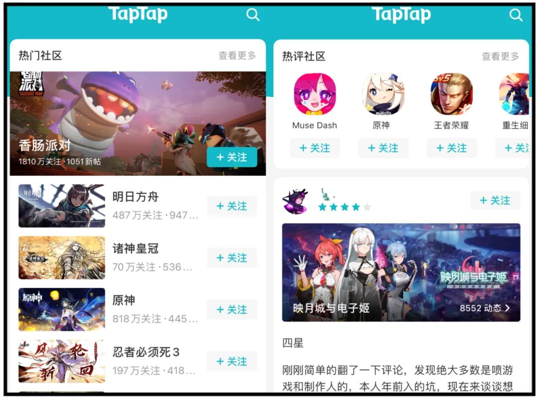 TapTap也希望自身由工具型应用向社交型应用转变,以培养质量高、粘性足的用户积极参与游戏相关的讨论。