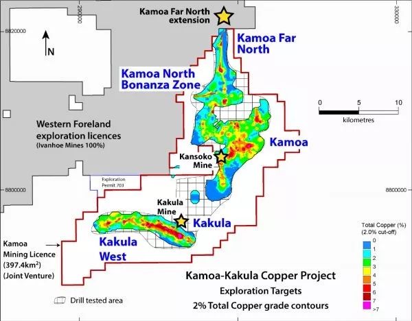 2019年发现厚度超过15.5米,铜品位13.8%的超富铜矿,使得卡莫阿铜矿的总储量提升至4240万吨,相当于中国全国铜矿总储量的近一半。并且未来依然有巨大的增加前景。