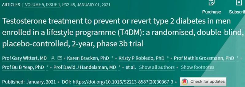 近日,柳叶刀(Lancet)子刊刊登了一则睾酮素研究,研究者在睾酮能改善2型糖尿病(T2DM)血糖控制的基础上,论证睾酮疗法是否可以预防或逆转2型糖尿病。