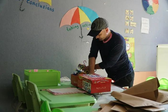 △小学年级外方老师在准备教具