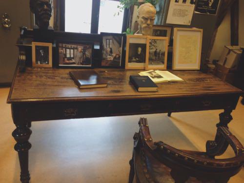 胡塞尔的写字台这样的阅读偏好,也印证了他对于胡塞尔理论的印象。胡塞尔的手稿上满是大大小小形状不一的纸条,但字迹如工程师作图工整,让人觉得胡塞尔是在不断地、反复地思考,随时调整自己的工作。而在胡塞尔工作台上的本人塑像被老师戴上了卡通墨镜,很酷、又好像有一种平等在其中,并不高高在上。