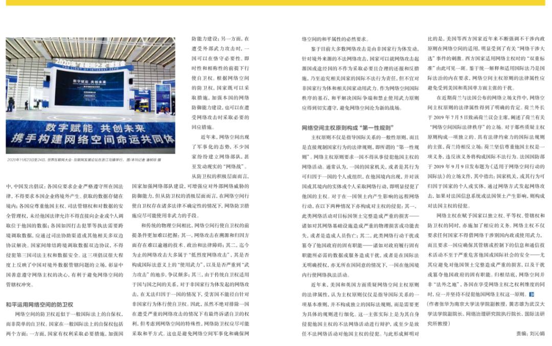 归根结底,网络空间并非“法外之地”,各国在享受网络主权之权利维度的同时,应一并坚持不侵犯他国网络主权这一原则。