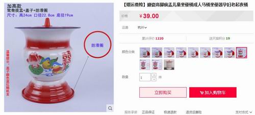 加了防滑圈和盖的同款痰盂,在中国购物网站上售价为39元。