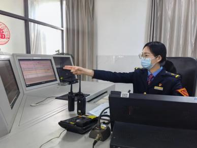 交接班后,佘文君开始了车站值班员一天的工作。她两手不停忙碌,一会儿用电话与火车司机联控,一会儿使用对讲机与室外作业人员联系,一会儿又用手指着显示屏上密密麻麻的信号安排列车进路……这样的忙碌会持续近10个小时。车站值班员岗位需要长期熬夜和注意力高度集中,劳动强度非常大,鲜有女同志涉足。