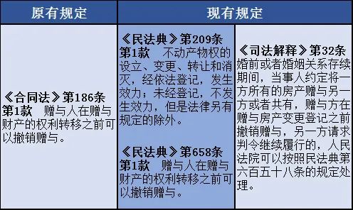 <中华人民共和国民法典>婚姻家庭编的解释(一)》(下称《司法解释》)第32条则进一步明确了将一方房产赠与另一方或共有时赠与方的任意撤销权。中华人民共和国民法典>