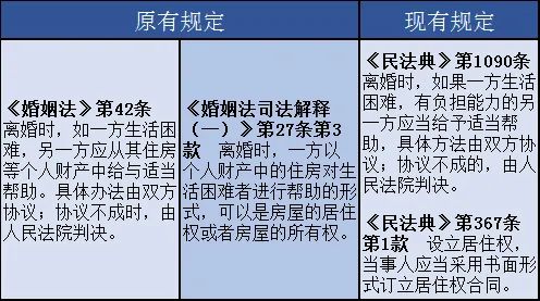 九、离婚时的经济帮助《民法典》第1090条重申了原《婚姻法》及相关司法解释中确立的离婚时对经济困难一方给予经济帮助的原则,并融合自身对居住权的新增内容,以及实践中已有的规定和做法,对以居住权形式的经济帮助予以明确。