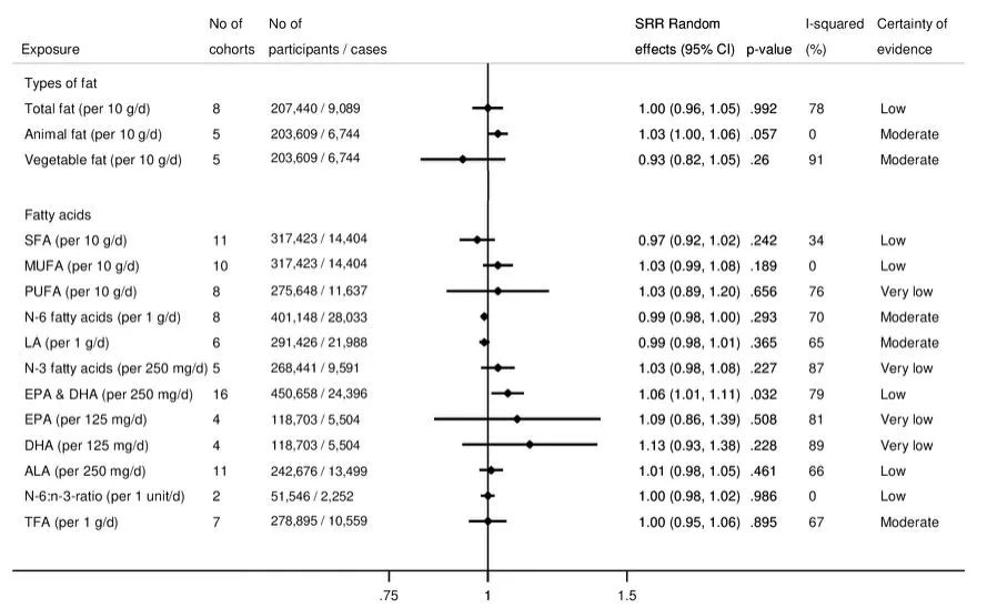 因此,更新的系统综述和剂量反应Meta分析将为更好指导T2DM饮食提供证据。为此,来自德国Heinrich Heine大学糖尿病研究中心的专家对摄入脂肪酸的种类和质量再T2DM预防中的作用进行meta分析,结果发表在最新的美国科学公共图书馆杂志PLOS Medicine上。