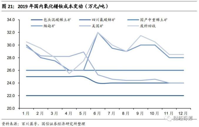 从下面这张图可以看到,即使到了2020年,中国稀土行业被整合为六大国有集团,北方稀土独占白云鄂博矿的情况下,白云鄂博的稀土价格(图中的“包头混碳稀土矿”)仍然远远低于其它来源。