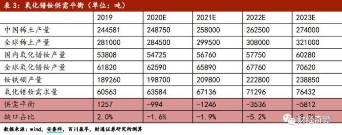 定量来看,根据财通证券测算,全球轻稀土氧化镨钕的需求量,将从2020年的6.3万吨,增加到2023年的7.6万吨,年化增速超过6%。