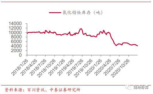 去年二季度开始,国内氧化镨钕库存快速下降目前,美国Mountain Pass和澳大利亚Lynas作为仅有的海外稀土来源,短期都没有新的产能投放。