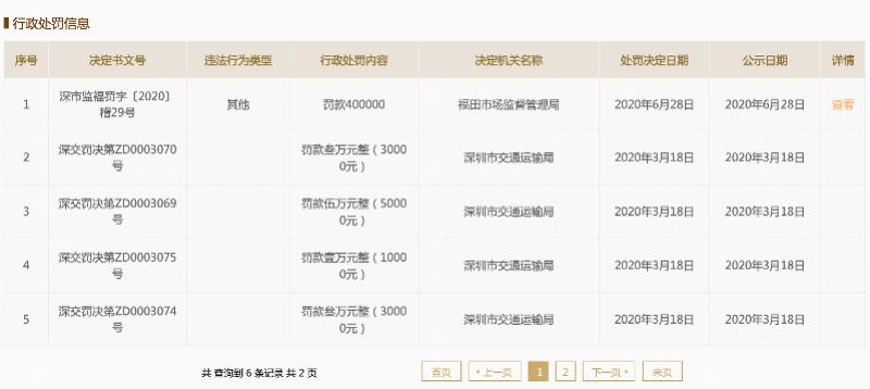 记者在国家企业信用信息公示系统查询发现,2020年,深圳依时货拉拉科技有限公司共有6条行政处罚信息,累计罚款53万元。其中,2020年6月28日,该公司因涉嫌修改交易规则未公开征求意见,被深圳市市场监督管理局福田局罚款40万。此外,中国执行信息公开网显示,该公司目前有3条被执行信息,被执行总金额超37万元。