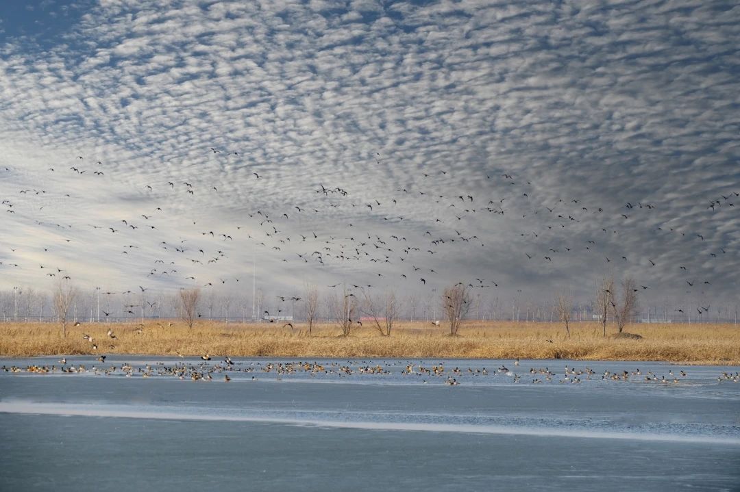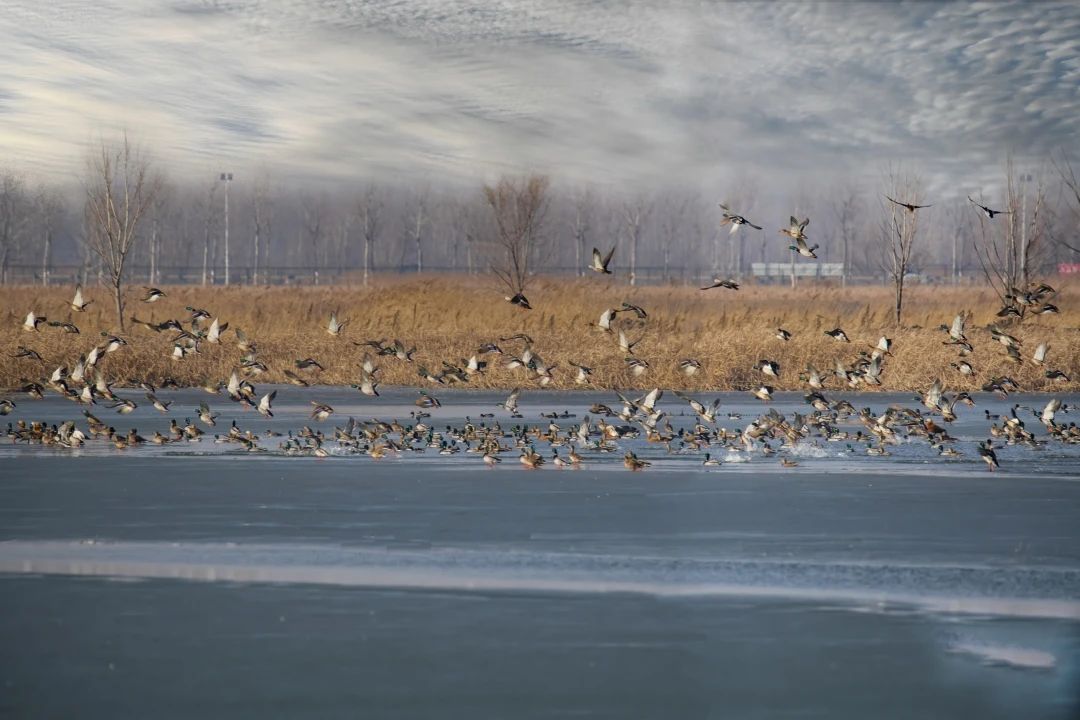 良好的生态环境还吸引了成群绿头鸭前来栖息