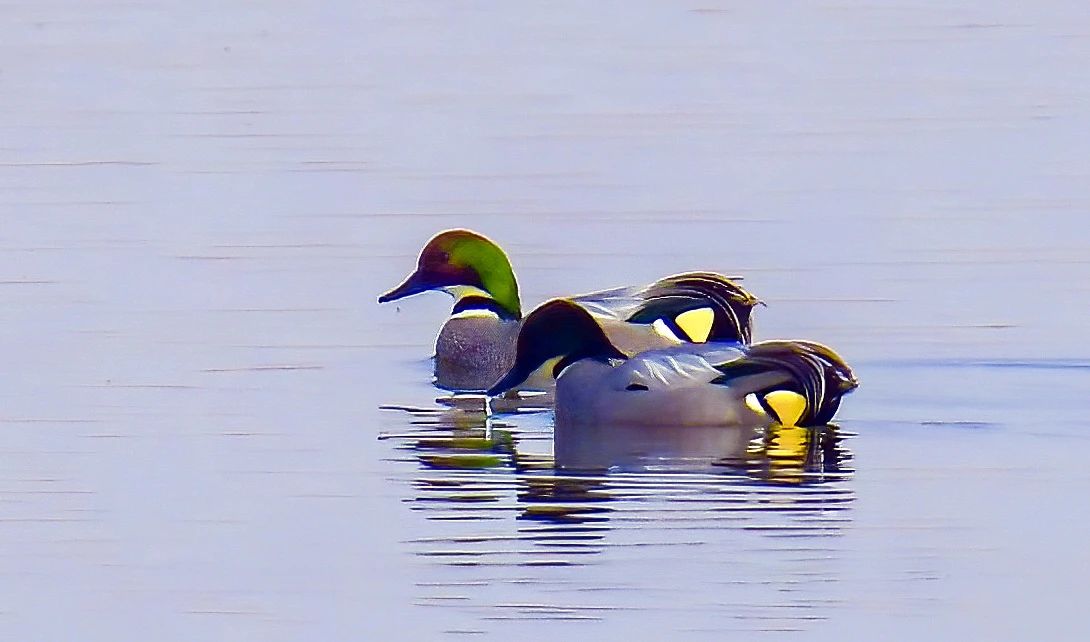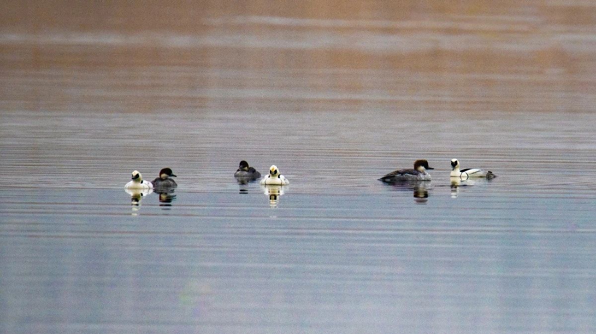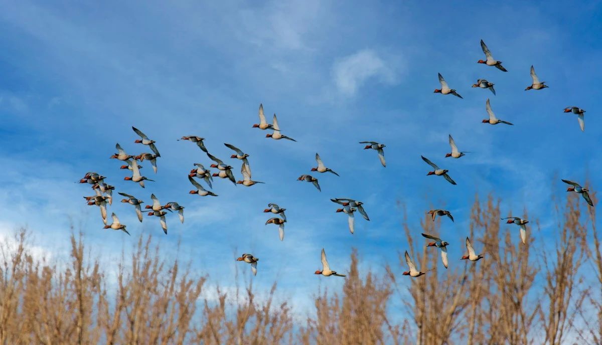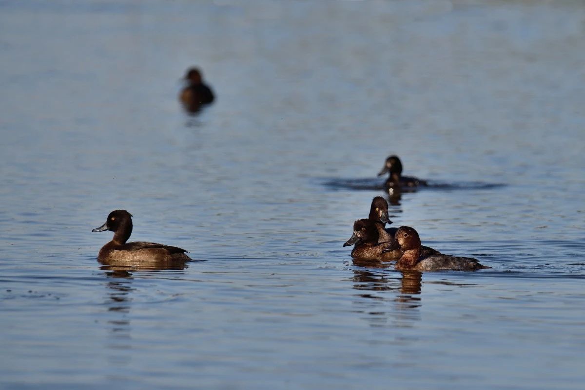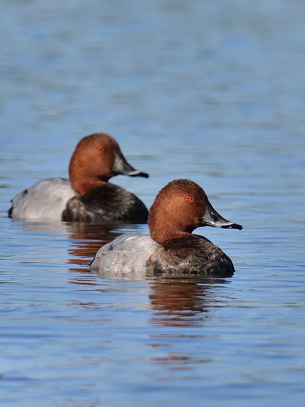 一群外形艳丽、举止呆萌的红头潜鸭来了