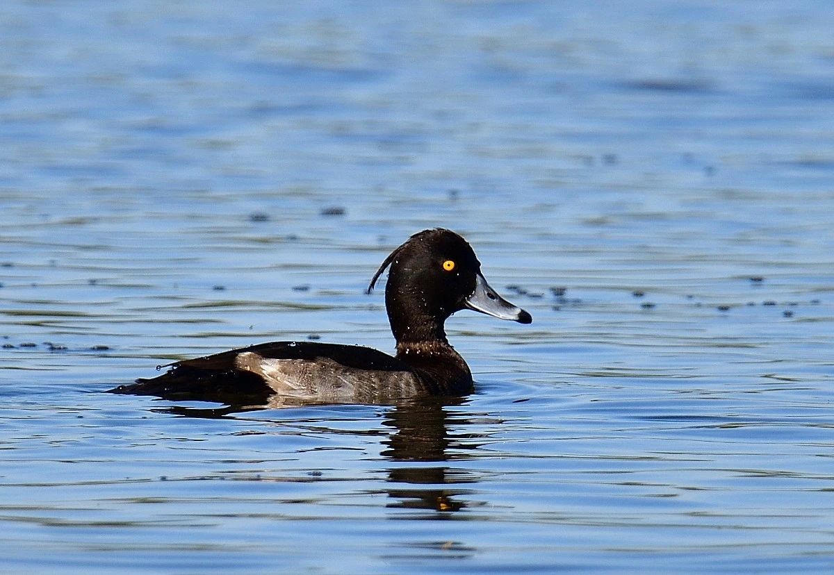 成群的凤头潜鸭在碧波荡漾的水面上随波逐流