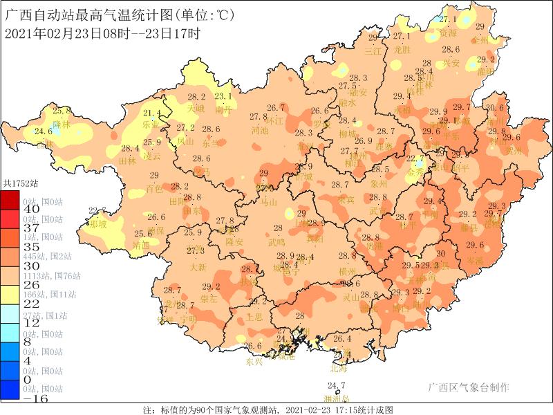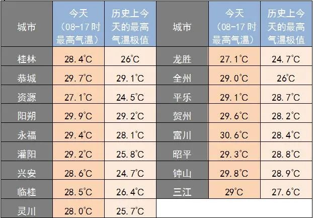 桂林、柳州、贺州3市多地还打破当地历史23日最高气温极大值