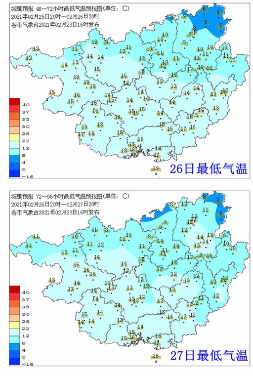 26-27日桂南大部最低气温将降至15℃上下