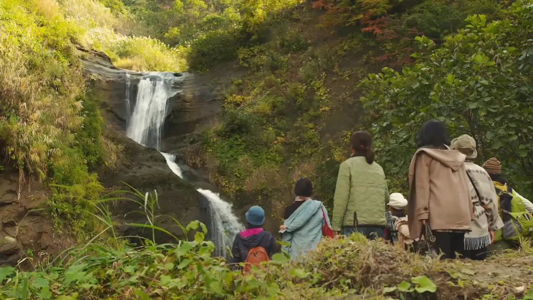 在详谈《横道世之介》的结尾之前,笔者认为可以先用《去见瀑布》这部作品来解析冲田修一一贯的电影结构,因为该作是冲田修一回归原点之作,不仅是原创剧本,且结构简单清晰,只讲述了两天一夜的故事,是一部非常适合分析冲田修一作者性的电影。正如前文所说,这是七名中老年妇女在野外生存自救的喜剧,她们的目的地从电影第一句台词就已经挑明:某个梦幻般的大瀑布。