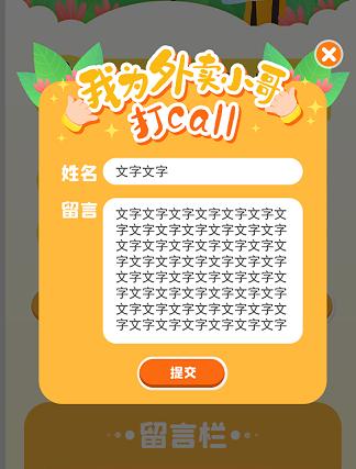 2、各位小伙伴可在留言板上送上对外卖小哥的祝福,以及理解、支持的话语,鼓励外卖小哥,让他们感受到来自我们的的关爱哦。