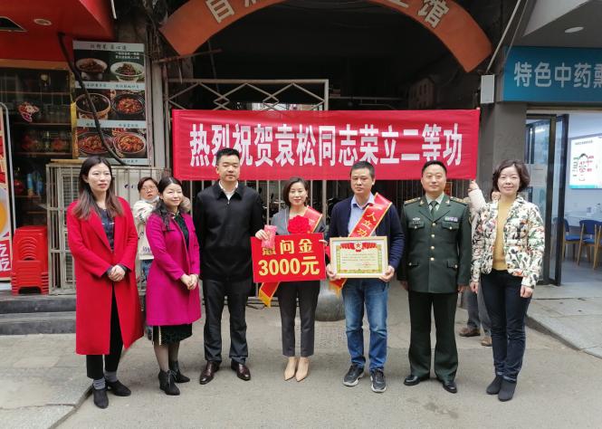 在2019年10月举行的第七届世界军人运动会上,赵俊鹏获得羽毛球团体冠军和男子羽毛球单打第四名,袁松获得男子跳水团体冠军和男子单人十米台跳水亚军,均荣立个人二等功。一直以来,我区高度重视拥军优属工作,把“尊崇工作法”的要求转化为实际行动,将为立功受奖现役军人家庭送喜报作为尊崇军人的具体体现,在全区营造“一人立功、全家光荣”的浓厚氛围,鼓励现役军人更好地在部队建功立业。