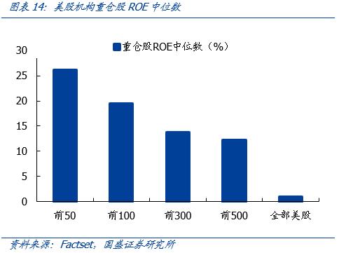 4、相比于利润增速,美股机构更注重ROE,且重仓股享受估值溢价。